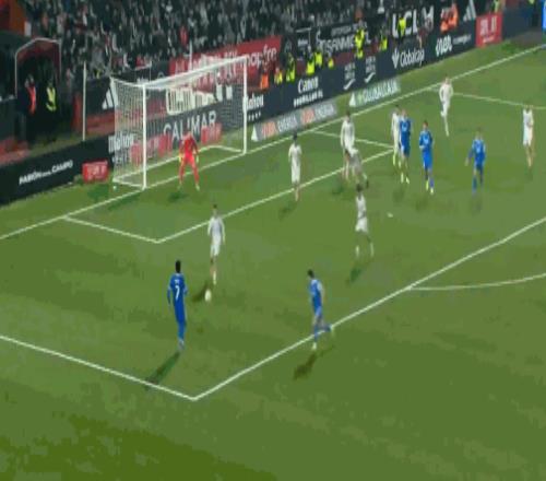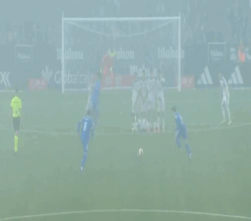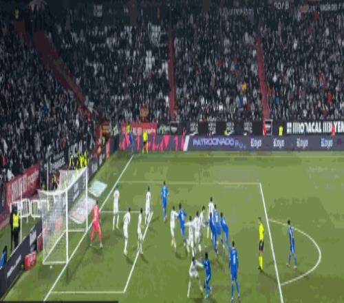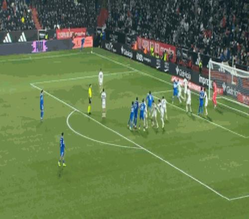 第69分钟,皇马开出任意球,贡萨洛头球攻门顶高